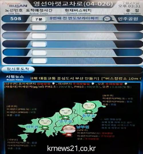 하지만 이제부터는 부산시내 버스정류소에 있는 버스정보안내기(450여개소)나 도로 교통전광판(82개소)에 실시간으로 대기질 정보를 제공함으로써 부산시내 어디든지 누구나 손쉽게 대기질 정보를 확인 할 수 있게 되었다.