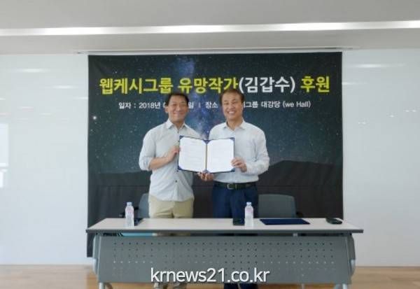 웹케시그룹(석창규 대표)은 6일 웹케시그룹 대강당에서 ‘유망작가 김갑수 후원식’을 개최했다.
