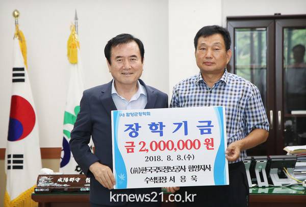 뒤를 이어 오후에는 서용욱(前한국국토정보공사 함양지사 수석팀장)씨도 지역 인재육성을 위해 사용해 달라며 200만원을 장학금으로 내놓았는데, 서영욱씨는 2015년부터 매년 (사)함양군장학회에 장학금을 기탁하고 있다.