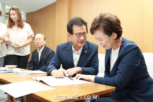아울러, 호남과 강원 간에 단절된 구간을 충북을 통하여 고속화 철도, 고속화 도로로 연결하고, 여기에 4차 산업혁명 과학기술을 접목하며, 백두대간 국민쉼터를 조성하는 등 강호축을 개발하여 미래 먹거리를 창출하고, 나아가 북한 원산으로 연결하는 남북 평화 축으로, 더 나아가 시베리아를 거쳐 유라시아로 진출하는 실크레일로 확대 발전시키려는 충북도의 비전이 실현될 수 있도록 양부처의 적극적인 지원을 부탁했다.