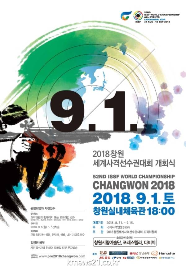 ▲ (사진=창원시청)‘2018 창원세계사격선수권대회 개회식’이 오는 9월 1일 오후 6시 창원실내체육관에서 열린다.
