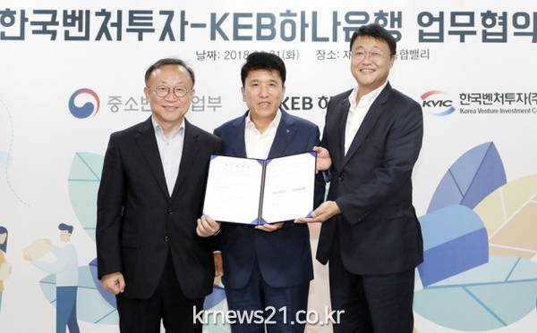 ▲ (사진=KEB하나은행)KEB하나은행은 21일 오후 한국벤처투자와 민간주도 벤처투자 활성화 및 중소·벤처기업 혁신성장을 지원하기 위한 업무협약을 체결했다고 밝혔다.