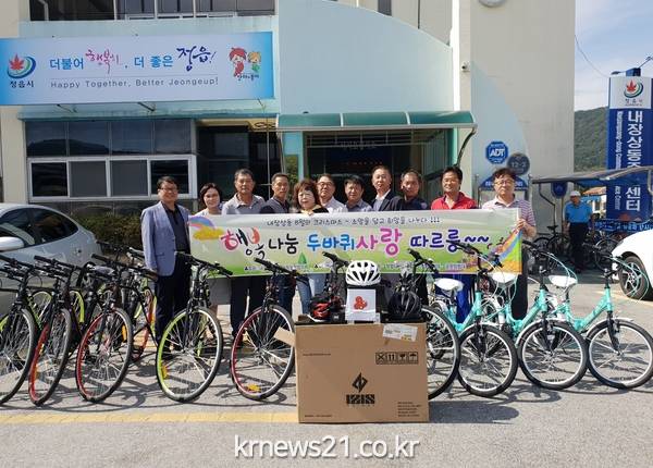 (전북/뉴스21)김문기기자=정읍시 내장상동 지역사회보장협의체(위원장 방상수.이상만)는 지난 21일 관내 저소득 초등학생 16명에게 자전거와 안전모를 지원하는 ‘행복나눔 두바퀴사랑 따르릉’사업을 추진했다.