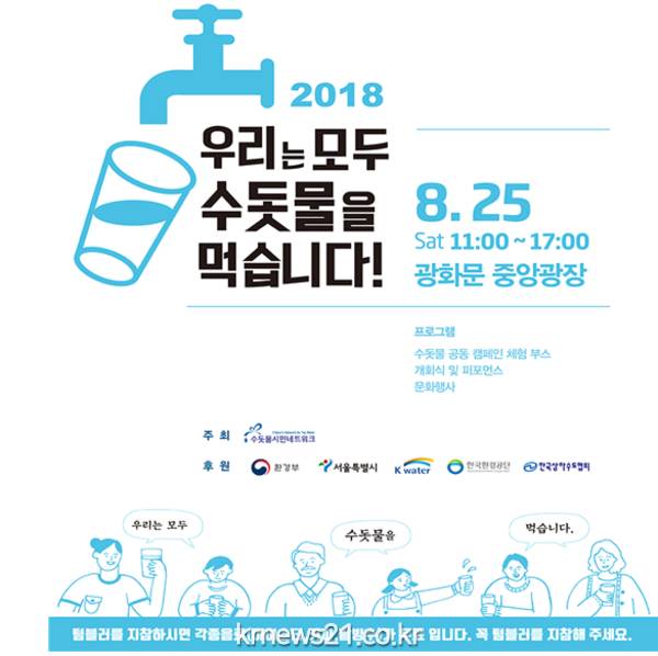 이번 행사는 ‘우리는 모두 수돗물을 먹습니다’라는 공식 구호 아래 수돗물에 대한 인식 개선과 음용률을 높이기 위해 마련됐다. 수돗물시민네트워크가 주최하며, 환경부와 한국수자원공사, 서울시 등이 후원한다.