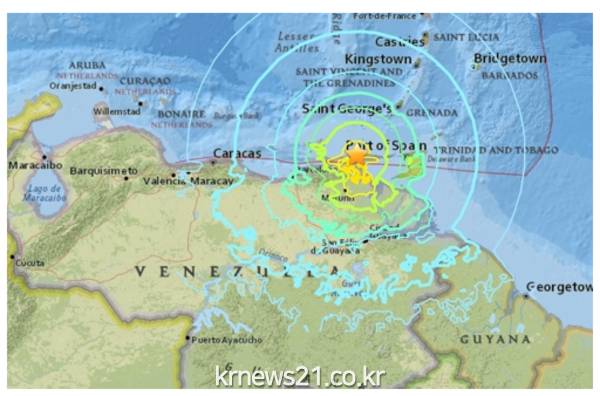▲ (사진=미국 지질조사국(USGS) 누리집 갈무리)베네수엘라 동북부 해안 지역에서 21일 규모 7.3의 강진이 발생했다고 미국 지질조사국(USGS)이 말했다.