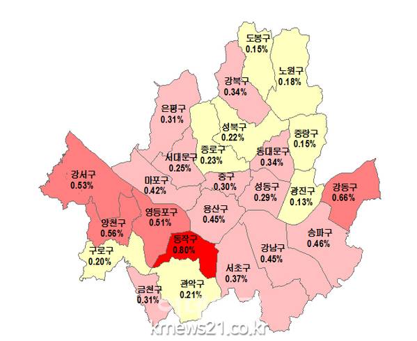 ▲ (사진=한국감정원)최근 집값이 크게 오른 서울 종로구, 중구, 동작구, 동대문구 등 4개 구가 투기지역으로 지정돼 대출 규제가 강화된다.