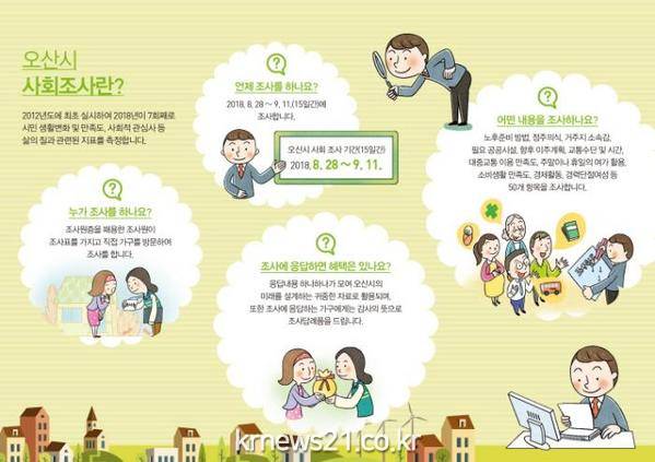오산시(시장 곽상욱)는 오는 28일부터 9월 11일까지 15일간 제6회 오산시 사회조사를 실시한다고 밝혔다.