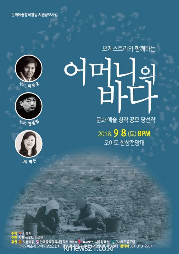 시흥시(시장 임병택)가 주최하고 전문예술단체 시흥플루트콰르텟(대표 양만식)이 주관하는 ‘오케스트라와 함께하는 <</span>어머니의 바다>’ 콘서트가 오는 9월 8일 저녁 8시 오이도 함상전망대 야외 데크에서 개최된다.
