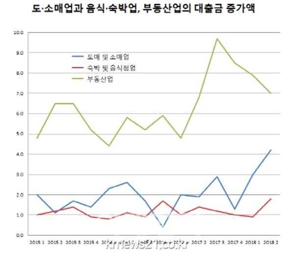 음식·숙박업 대출금(+1조8000억원)도 최대로 늘었다.