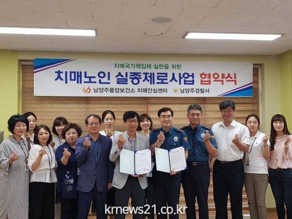 남양주풍양치매안심센터(센터장 정태식)는 치매국가책임제의 일환인 치매노인 실종제로사업을 위해 남양주경찰서와 ‘지문사전등록제’ 업무협약을 체결했다.