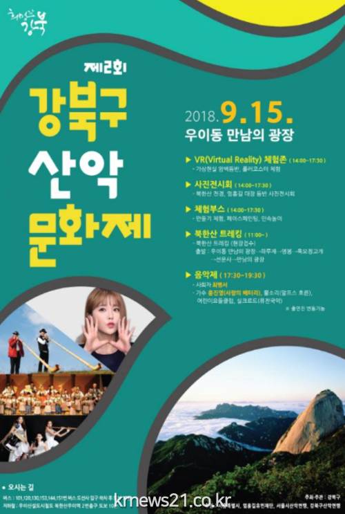 역사 체험 프로그램은 근현대사기념관에서, 산악문화제는 우이동 만남의 광장에서 각각 오후 2시부터 시작된다. 오후 5시30분부터는 음악축제도 열린다.