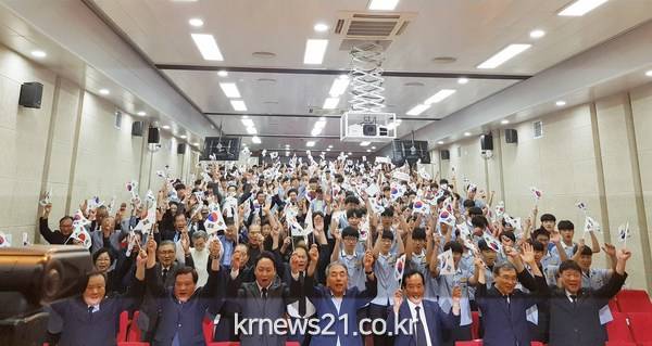 ▲ (사진=광주교육청)광덕고등학교(교장 장홍)가 29일 108년 전 경술국치의 아픔을 잊지 않기 위해 추념행사를 치렀다.