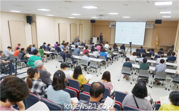 윤봉한 시흥시 동네관리소 운영협의회장은 ‘자치력을 확보하는 마을관리’란 주제로 동네관리소는 참여가 바탕이 된 주민주도 마을 혁신이라 발표했다. 이어 김상신 센터장은 ‘시흥 동네관리소의 의미 및 성과와 발전 방향’을 발제하였다.