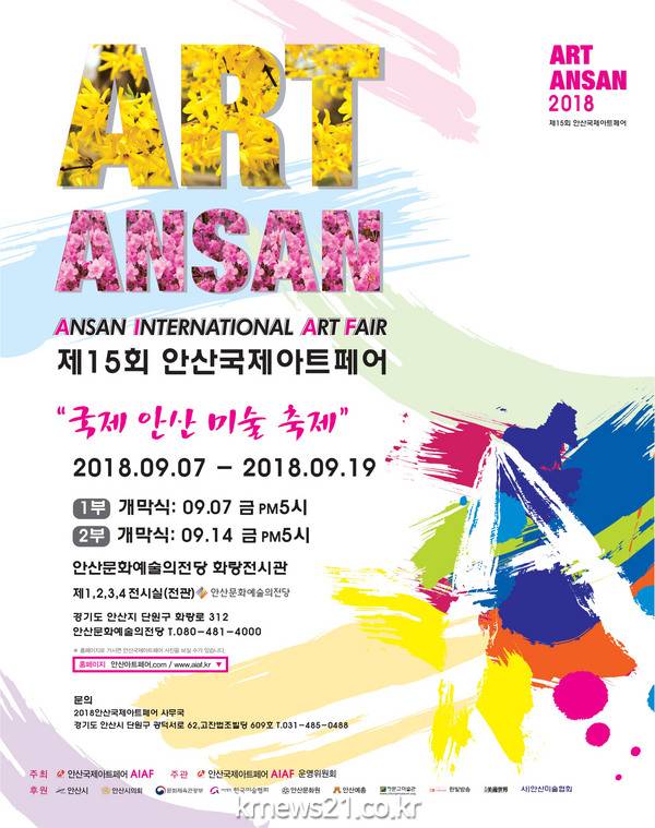 경기도의 대표적인 국제 미술 축제이자 미술품 거래 시장인 안산국제아트페어가 9월 7일부터 12일까지 1부 행사, 9월 14일부터 19일까지 2부 행사로 나뉘어 안산 문화 예술의전당 전시관에서 개최된다.