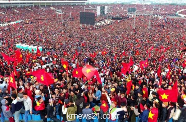 특히 후반전에 쩐 민 브엉 선수가 만회골을 기록하자 그 어느때보다 뜨거운 환호성이 울려퍼졌다.