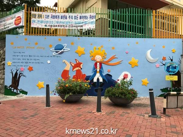 기존에 낡고 어두웠던 통학로를 동화 어린왕자 주제로 꾸며 학생들의 동심을 자극하고, 각양각색으로 입힌 담장 벽돌에는 생동감 넘치는 표정을 그려 유쾌함을 더했다.
