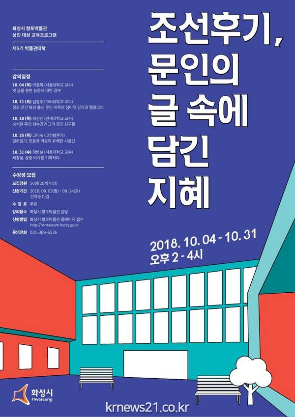강의 신청은 내달 3일부터 14일까지 화성시 향토박물관 홈페이지(http://hsmuseum.hscity.go.kr)에서 할 수 있으며, 선착순 50명을 모집한다.