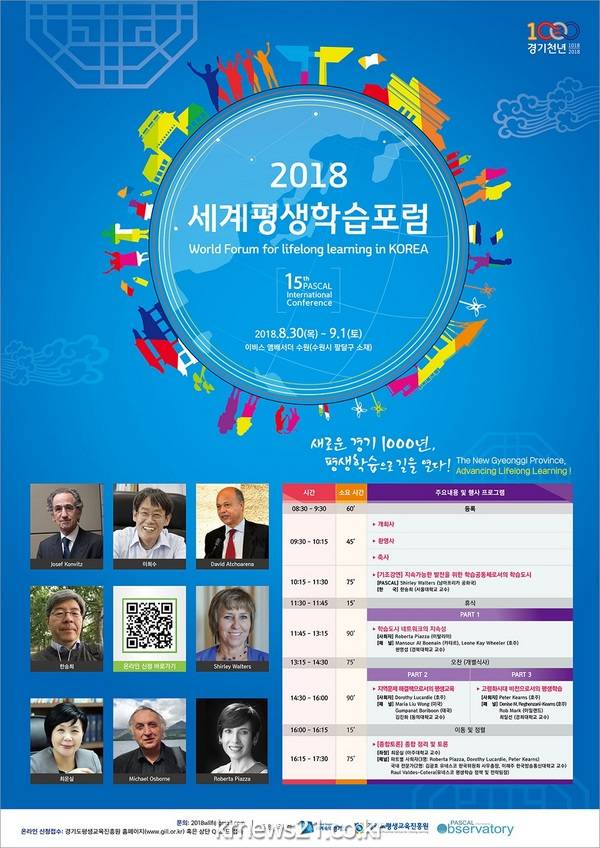 경기도와 경기도평생교육진흥원, 파스칼(PASCAL)이 공동개최하고 국가평생교육진흥원, 유네스코한국위원회, 한국평생교육학회가 후원하는 ‘2018 세계평생학습포럼’이 8월 30일, 이비스 앰배서더 수원에서 개최됐다.