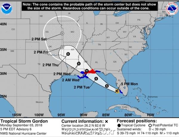 ▲ (사진=미국 국립허리케인센터)미국 남동부 멕시코만(灣)에 접한 미시시피 주와 루이지애나 주가 열대성 폭풍 ‘고든’의 상륙을 앞두고 주내 비상사태를 선포했다.