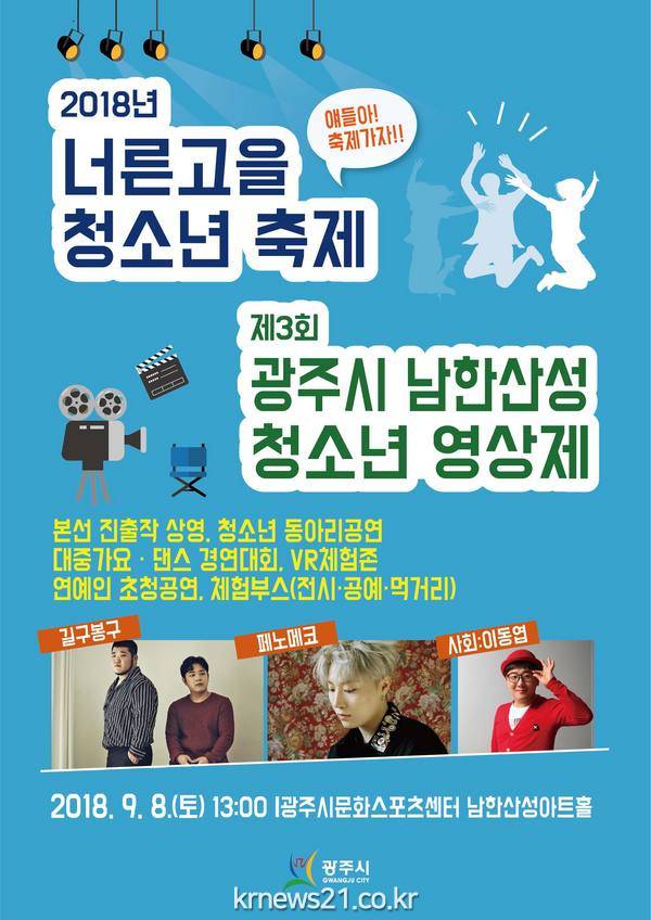 광주시(시장 신동헌)의 대표 청소년 문화행사인 ‘너른 고을 청소년 축제’와 ‘남한산성 청소년 영상제’가 오는 8일 남한산성아트홀에서 막을 올린다.