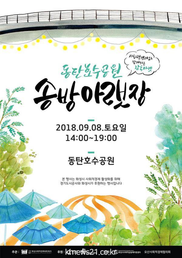 사회적 경제기업이 한자리에 모이는 감동마켓 ‘송방 아랫장’이 화성시 동탄 호수공원에서 8일 토요일 오후 2시부터 7시까지 열린다.
