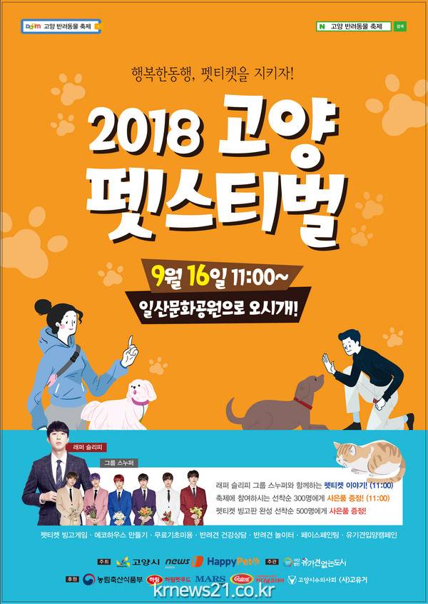 오는 16일 오전 11시 고양시(시장 이재준) 일산문화공원에서 반려동물 천만 가구 시대에 발맞춘 성숙한 반려동물 문화 체험의 장 ‘2018 고양 펫스티벌’이 개최된다.