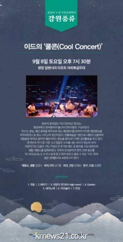 이번 공연은 쿨한 국악, 젊은 국악이 평창의 가을밤을 장식하는 ‘원초적음악집단이드_이드의 쿨콘(Cool Cocnert)’ 공연으로 진행될 예정이다.