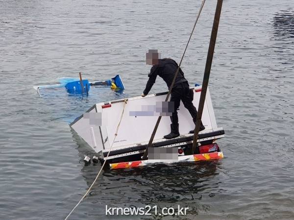 여수시 국동 소경도 대합실 선착장 앞에서 5톤급 화물차가 바다에 추락하였으나, 운전자는