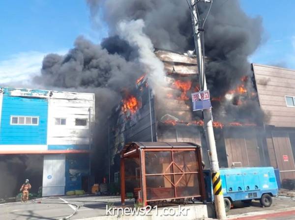 소방당국은 화재 1시간 20여분 만인 오후 4시 31분께 대응 최고단계인 3단계를 발령했다.