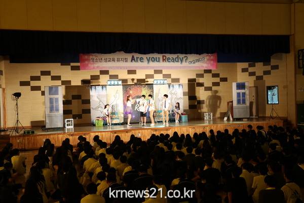 9월 10일 남양 고등학교를 찾은 성문화센터 뮤지컬 팀은 학생들의 높은 관심을 받으며 진행되었다. 성에 대해 함께 고민하고 나누는 이야기는 비록 학생 분장을 한 성인들의 연기였지만, 재학생들의 관심을 집중시키기엔 충분했다. 출연진들의 유쾌한 연기와 발랄한 춤까지 더해진 뮤지컬은 관람하는 학생들이 무대 위로 극 중에 참여할 수 있게 하거나, 배우들이 무대 아래로 내려가 학생들에게 성지식 퀴즈를 내고, 답을 맞힌 학생들에게는 선물을 주는 등 학생들의 참여를 적극적으로 이끌어내 학생들과 함께 호흡했다. “Are you Ready”라는 제목은 많은 것을 시사한다. ‘성에 대해 알 준비가 됐니?’, ‘사랑에 대해 알 준비가 됐니?’, ‘사랑에 따른 책임을 질 준비가 됐니?’