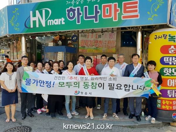 (전북/뉴스21)김문기기자=정읍시는 지난 10일 샘고을시장과 새암로 상점가 일대에서 정읍시 여성소비자연합 단체와 물가모니터 요원, 관계공무원 등 20여명이 참여한 가운데 ‘추석 명절 물가안정 시민 캠페인’을 펼쳤다.