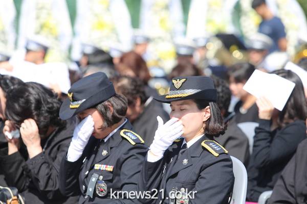 영결식에는 유가족과 함께 장례위원장인 구자영 서해해경청장, 시·군 단위 기관단체장, 전국