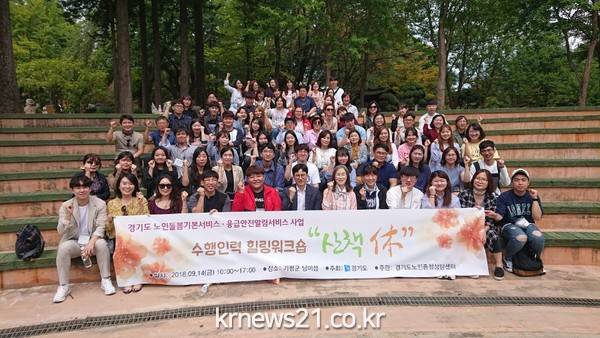 경기도와 경기도노인종합상담센터(거점수행기관)는 노인돌봄기본서비스 종사자(사회복지사)와 응급관리요원 등 80명을 대상으로 14일 가평군 남이섬에서 힐링 워크숍 ‘산책 休’를 진행한다.