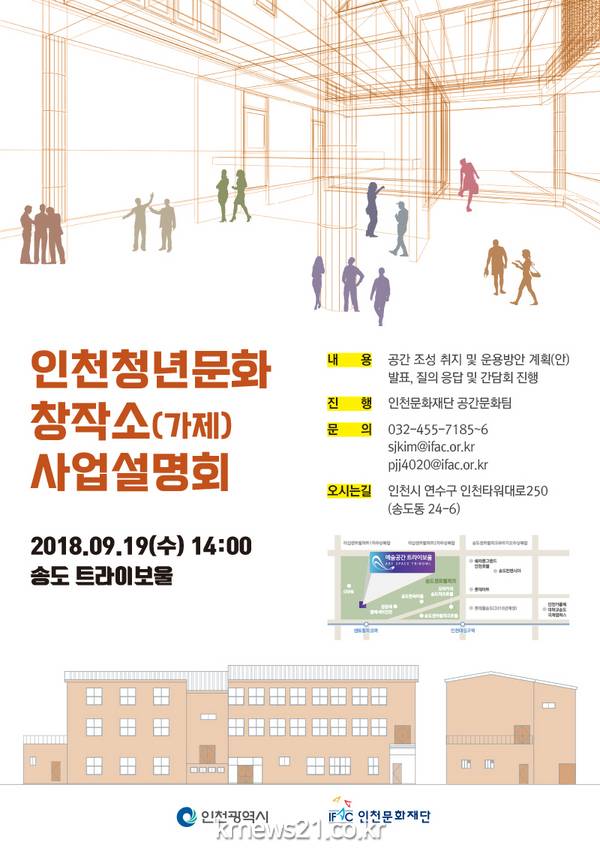 지난 2017년부터 건물 보강 및 리모델링을 진행하고 올해 6월 말에 공간운영에 대한 인천시와 재단이 위탁 협약을 체결한 이후 공식적으로 진행되는 이번 설명회에서는 청년문화창작소 내부 공간 조성계획 및 기본 운영 방안에 대한 설명과 함께 앞으로의 발전을 위해 청년문화창작소가 가져야할 방향성 및 운영방안에 대한 구체적인 지역의 담론을 나누기 위한 논의의 자리를 마련한다.