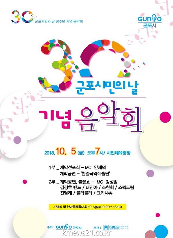 군포시(시장 한대희)는 내달 5일과 6일 양일간 군포시민체육 광장에서 ’제30회 군포시민의 날 기념행사‘를 개최한다.