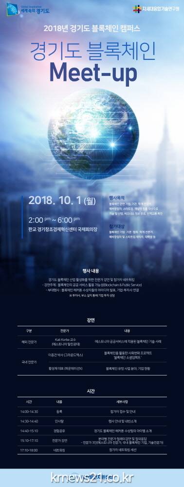 경기도와 차세대융합기술연구원이 오는 10월 1일 경기 창조경제혁신센터에서 이런 내용을 담은 경기도 블록체인 네트워크 행사를 개최한다고 20일 밝혔다.
