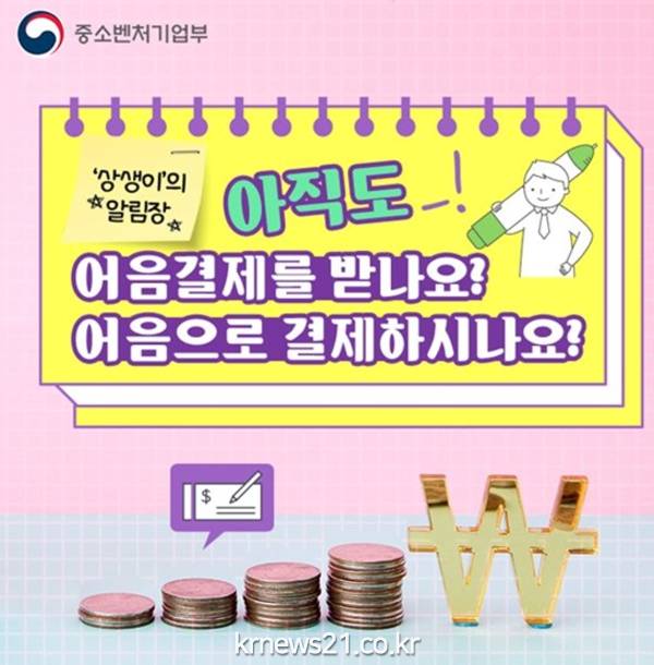 ▲ (사진=중소벤처기업부)어음대체 수단인 상생결제 이용 의무화가 21일(금)부터 본격 시행된다.