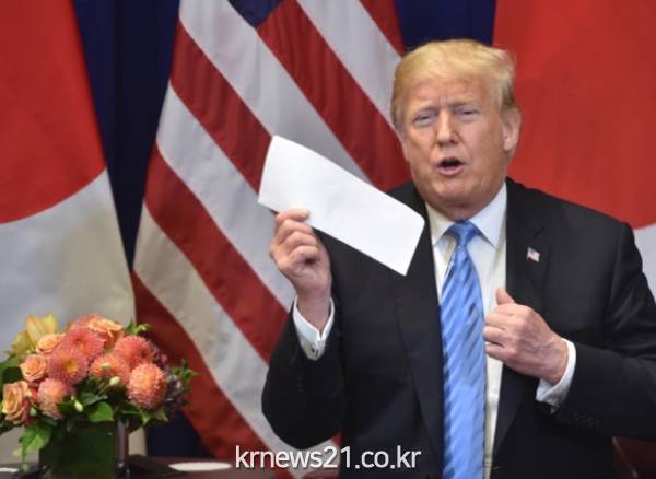 트럼프 대통령은 아베 총리의 면전에서 김정은 북한 국무위원장이 보낸 친서를 직접 꺼내들어 보이기도 했다.