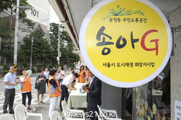 송정동은 지난해 8월 도시재생 희망지 사업 주민거점공간인 ‘송아G’를 개소해 운영 중이다. 송아G는 송정동 주민들의 아지트(Group)를 의미한다. 주민들은 송아G를 거점으로 도시재생을 위한 지역 조사, 의제 발굴, 교육·홍보 등을 하며 살기 좋은 지역을 만들어 가고 있다.