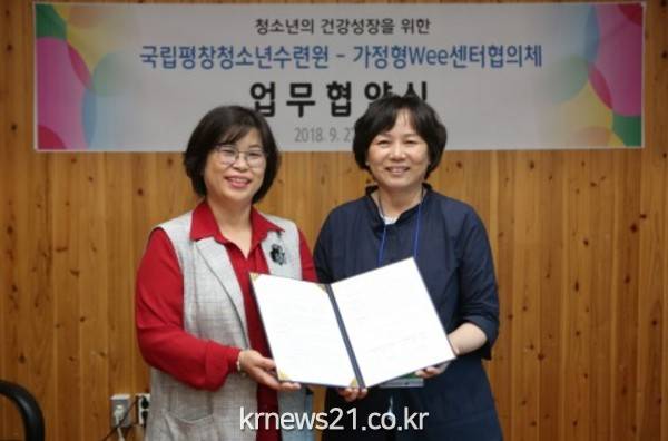 국립평창청소년수련원(원장 이현주)과 가정형 Wee센터협회(협회장 박정향)는 청소년의 건강한 성장을 지원하는 것을 목적으로 27일 업무협약을 체결했다.