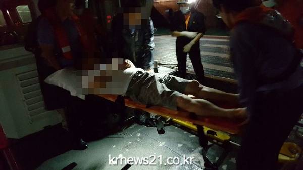민간해양구조선을 이용 대기 중인 119구급차에 인계 육지 병원으로 긴급 이송하여 응급 치료 후