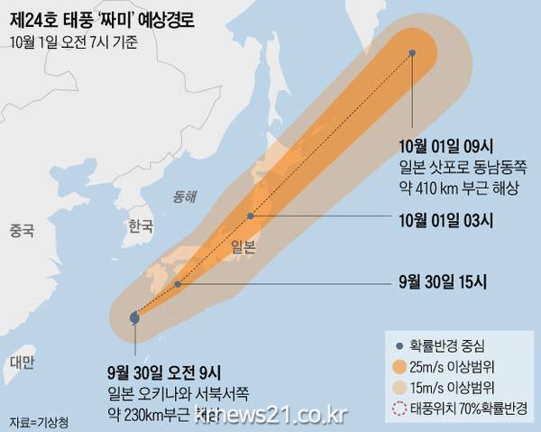 ▲ (사진=기상청)초강력 태풍 '짜미'가 수도권을 포함한 일본 열도를 따라 종단하면서 인명 피해가 속출했다.