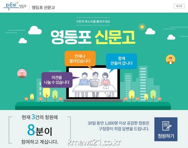 ▲ (사진=영등포구청)영등포구(구청장 채현일)가 10월 1일부터 청와대 국민청원을 벤치마킹 한 온라인 청원창구 ‘영등포 신문고’를 운영한다고 밝혔다.