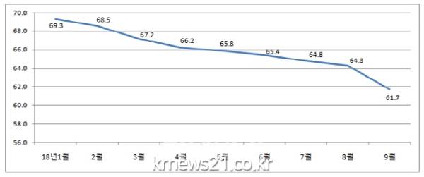 2일 KB국민은행이 발표한 9월 주택가격 월간 통계에 따르면 지난달 서울 아파트 전세가율은 61.7%로 전월(64.3%) 대비 2.6%포인트 하락했다.