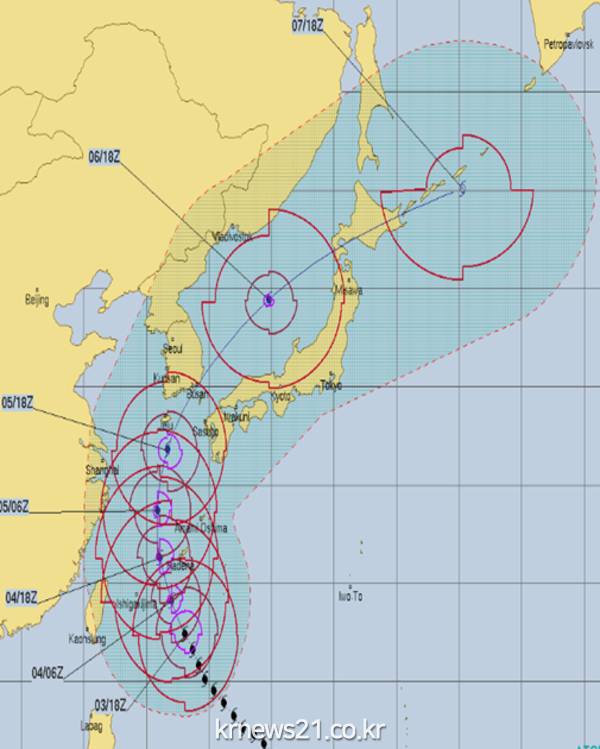 태풍진로는 6일 오전 제주도를 지나 7일 오전에 독도 동북동쪽 해상으로 상륙할 것으로 예상되며 최대순간풍속 30m/s 이상의 매우 강한 바람이 불겠고, 10월 8일 09시경 일본 삿포로 동쪽 약 690km에서 부근 해상에서 열대성 저압부로 변할 것으로 예상되지만 직·간접영향으로 인하여 강한 바람을 동반한 많은 비가 예상되므로, 도로침수 및 하수역류가 발생되었던 지역·지점에 대하여 피해가 없도록 사전조치에 철저를 기해 줄 것을 당부했다.