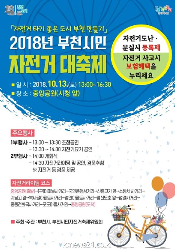 한편 이날 행사장에서는 부천시 자전거보험 홍보부스와 9월부터 시행된 자전거등록제 현장 등록창구를 운영한다.