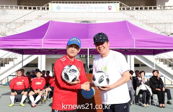 안양시(시장 최대호)는 지난 3일 안양종합운동장에서 수도군단과의 친선 축구경기를 개최했다.