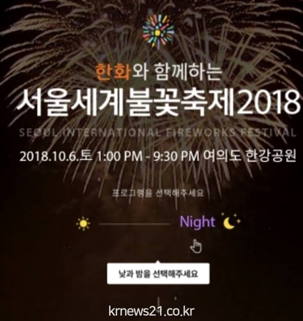 한반도 쪽으로 북상하고 있는 제25호 태풍 '콩레이'에 취소될 뻔 했던 '한화 서울세계불꽃축제 2018'가 6일 저녁 7시 서울 여의도 한강공원에서 예정대로 진행한다고 밝혔다.