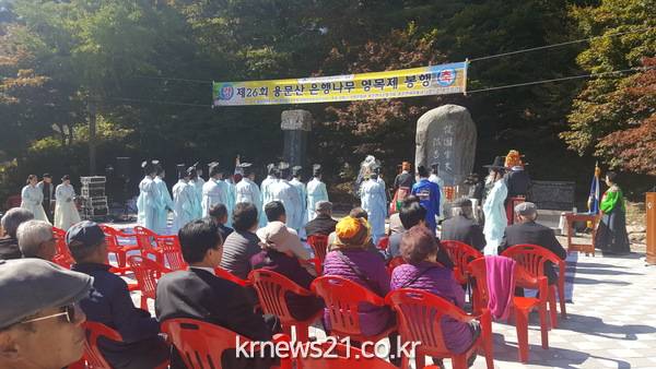 ▲ (사진=양평군청)양평문화원 용문분원(분원장 홍인기)은 10월 12일 오전 10시 30분 용문산 관광지내 영목제단에서 제26회 용문산 은행나무 영목제를 개최했다.