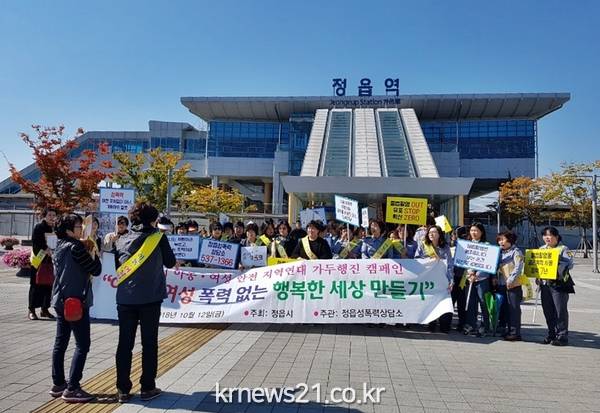 이번 가두 캠페인은 아동․여성 안전지역연대 사업 일환으로 정읍시청을 비롯하여 정읍성폭력상담소, 정읍경찰서, 아산병원, 정읍소방서, 지역아동센터, 정읍시 여성단체 협의회 등 9개 단체 70여명이 참석했다.